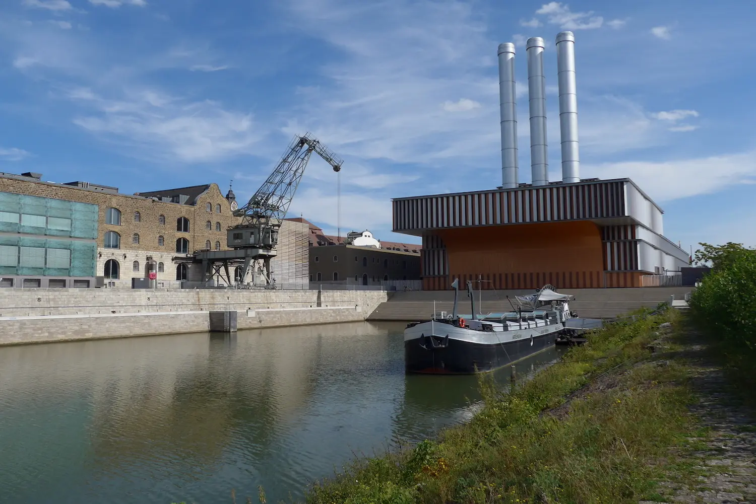 Die Arte Noah ist ein umgebauter Lastkahn, der im Alten Hafen von Würzburg liegt. Seit den 1990er-Jahren dient das Schiff als schwimmende Galerie und Veranstaltungsort. Mit seiner klaren, funktionalen Gestaltung und dem maritimen Charakter hebt es sich von den historischen Gebäuden am Ufer deutlich ab.